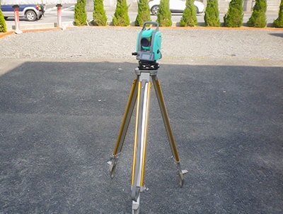 野外で測量機器を用いて行われる外仕事(通称「外業」)は、通常2~3名でチームを組み「トランシット」「光波測距離」「GPS測量機」などの専門的な機器を使い測量を行います。